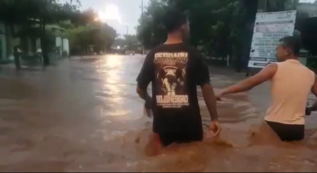 Ketinggian air diperkirakan hingga mencapai satu meter yang menggenang di jalan raya.Dalam sepekan ini salah satu daerah yang bertempat di kawasan dataran tinggi Bojonegoro masih saja terjadi banjir bandang.