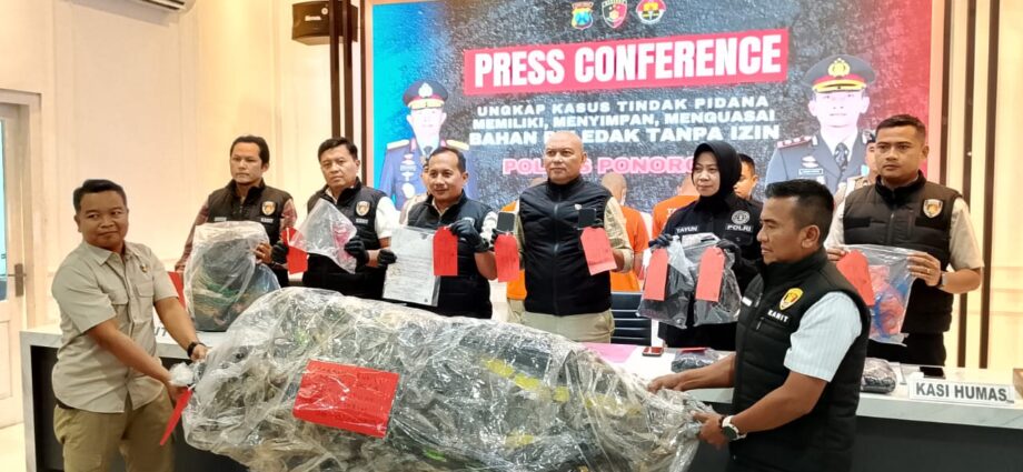 Penyidik Polres Ponorogo menetapkan tersangka dengan Undang-Undang Darurat Nomor 12 Tahun 1951 dengan Ancaman hukum penjara seumur hidup, atau penjara maksimal 20 tahun.