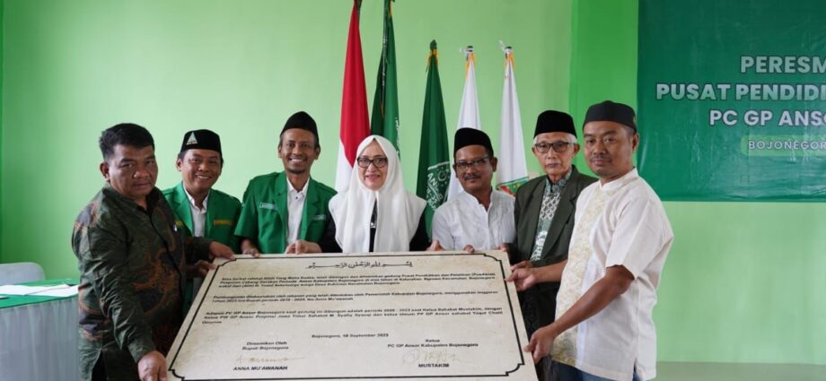 Bojonegoro, rednews.co.id – Bupati Bojonegoro Anna Mu’awanah meresmikan Gedung Pusat Pendidikan dan Pelatihan (Pusdiklat) Pimpinan Cabang Gerakan Pemuda Asor (PC GP Ansor) Bojonegoro, Minggu (10/9/2029). Pusdiklat tersebut berada di Jalan Pondok Pinang Kelurahan Ngrowo Kecamatan Bojonegoro.