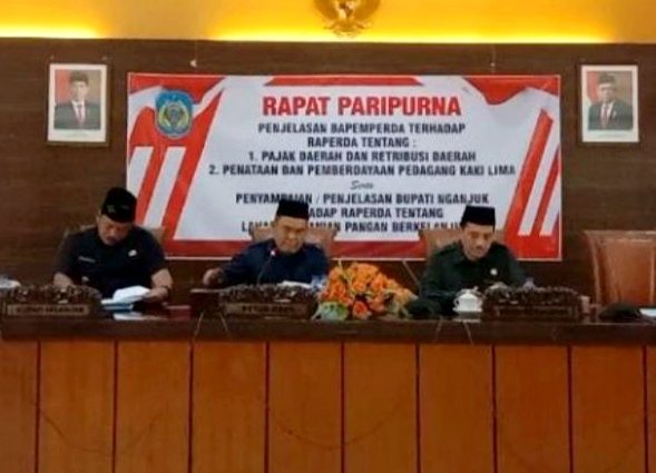 Rapat paripurna di pimpin langsung wakil tiga DPRD Nganjuk Jianto, SH. Hadir dalam rapat ini Plt Bupati Nganjuk Dr. Drs. H. Marhaen Djumadi, SE SH, MM MBA, Sekretaris daerah kabupaten Nganjuk (sekda ) Nur Solekan , Ketua DPRD Nganjuk Tatit Heru Tjahjono, S.Sos, Wakil 1 DPRD Nganjuk Ulum Basthomi, S, Ag, M.Si jajaran Forkopimda, serta OPD dan tamu undangan lainnya. Jumat (31/03/2023).