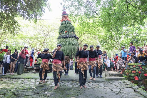 Diawali dengan kirab yang membawa Gunungan yang dibuat dari berbagai makanan hasil bumi, setelah itu Gunungan tersebut di larungkan di area Sumber Banteng. Masyarakat yang menyaksikan, langsung berebut untuk mendapatkan bagian dari gunungan tersebut yang menjadi salah satu daya tarik dari kegiatan tersebut.