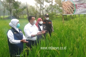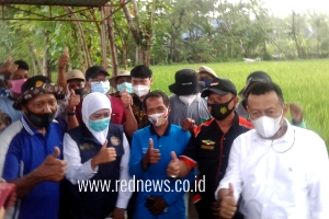 Kedatangan orang nomor satu di Jatim di Desa Semanding ini untuk melihat pertanian padi yang mampu menghasilkan panenan padi sebanyak kurang lebih 2ton perpetak.