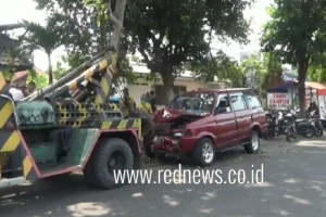 “Tadi mobil menghindari pesepeda ontel yang lewat sehingga menabrak pohon Ketapang ini. Rencananya mobil ini mau mengambil rombongan iring-iringan pengantin di Plosokerep,” kata Suwaji, saat berada di lokasi kejadian.