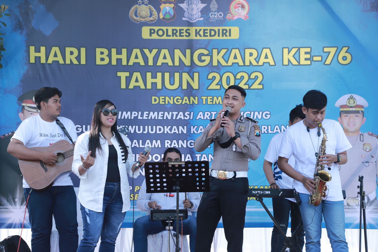 Dalam kegiatan tersebut Satlantas Polres Kediri mengusung tema “Implementasi Art Policing Guna Mewujudkan Kamseltibcar Lantas Dalam Rangka Menuju Indonesia Tangguh Indonesia Tumbuh”.