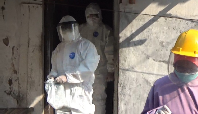 Pantauan d lokasi, sekitar pukul 14.00 WIB, tiga orang petugas medis dari Puskesmas Sumobito, dengan menggunakan APD lengkap mengunjungi rumah S. Mereka datang didampingi aparat kepolisian Polsek Sumobito dan perangkat Desa. Kemudian, dua orang petugas masuk ke dalam rumah S dan melepas infus yang menempel di tangannya, setelah itu meninggalkan lokasi.