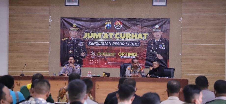 KEDIRI – rednews.co.id Dalam rangka menerima dan mendengar aspirasi masyarakat, Kapolres Kediri AKBP Agung Setyo Nugroho, SIK kumpulkan tokoh masyarakat (tomas), tokoh pemuda (toda), serta petugas keamanan (_security_) di wilayah Kabupaten Kediri untuk mengikuti kegiatan Jum’at Curhat yang digelar di aula Jana Nuraga Polres Kediri, Jum’at (6/1/2023).