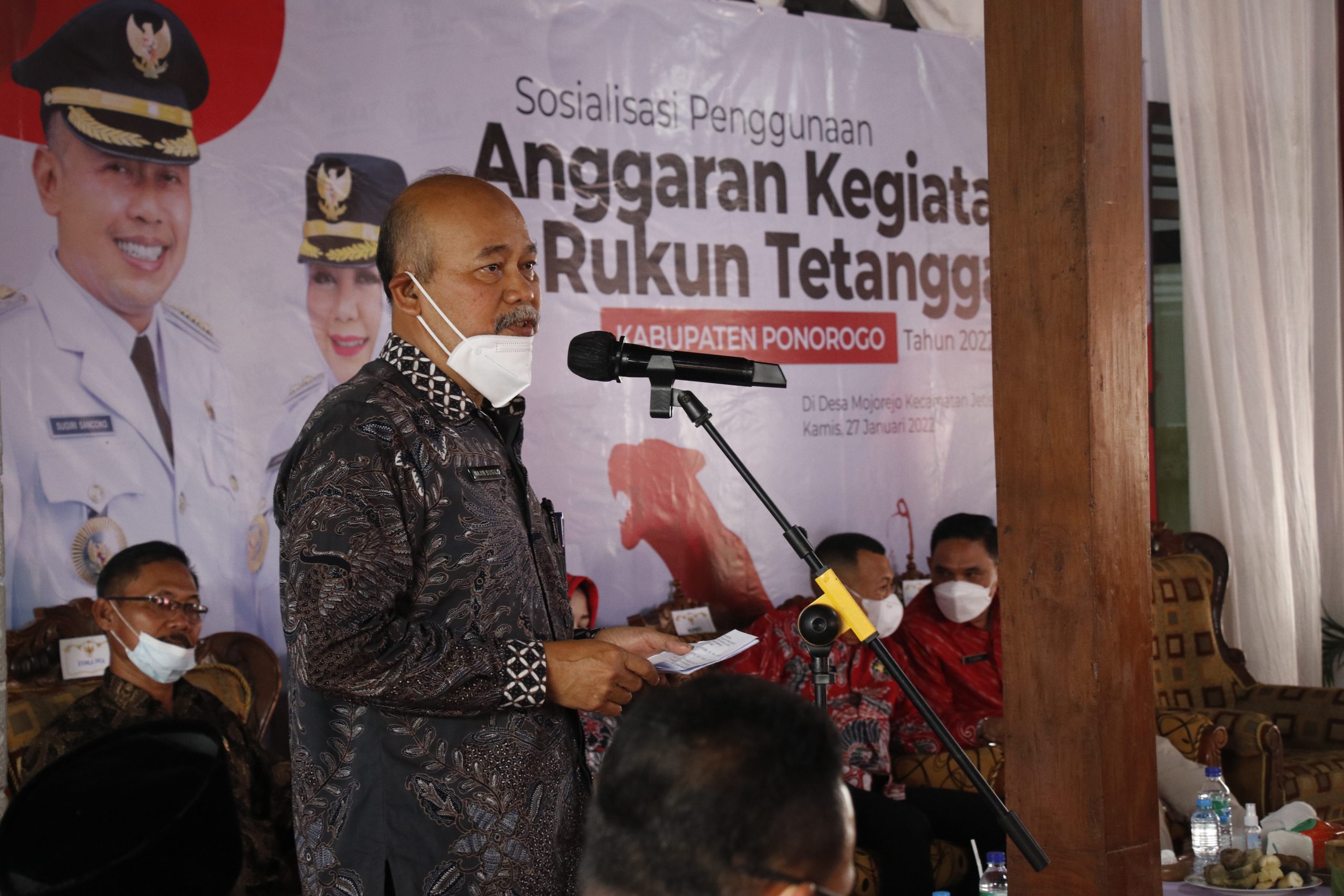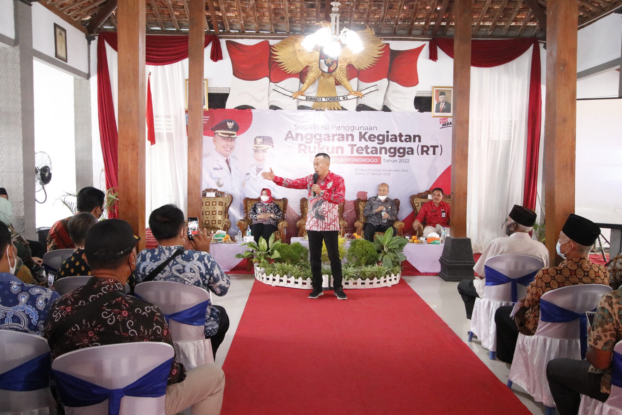 Bupati Ponorogo Sugiri Sancoko Sosialisasikan  Penggunaan Anggaran RT kepada semua kepala desa ( Kades), kepala urusan ( Kaur) dan rukun tetangga ( RT ) se Kabupaten Ponorogo yang bertempat di Balai Desa Mojorejo Jetis Kamis (27 /1/2022)