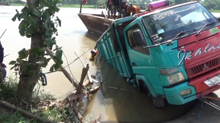 Keluar Dari Perahu Penyebrangan, Truk Terperosok ke Sungai Branta