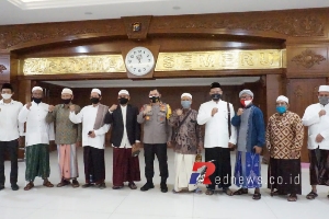 “Saya mengucapkan terima kasih kepada Bapak Kapolda Jatim, yang telah menyempatkan waktu untuk menerima kami. Kami berharap, Kapolda Jatim bisa segera menyelesaikan problem yang ada di Pamekasan ini,” kata KH. Afifuddin Toha, perwakilan kyai sepuh Pamekasan. (kuh)