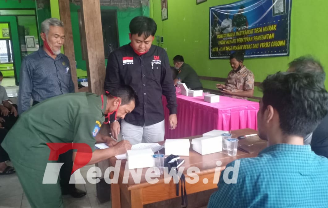 Dihadapan Muspika Mlarak, Warga didampingi kuasa hukum mengikuti mediasi kedua dengan pihak perusahaan .(foto : Amar Makruf/rednews.id)