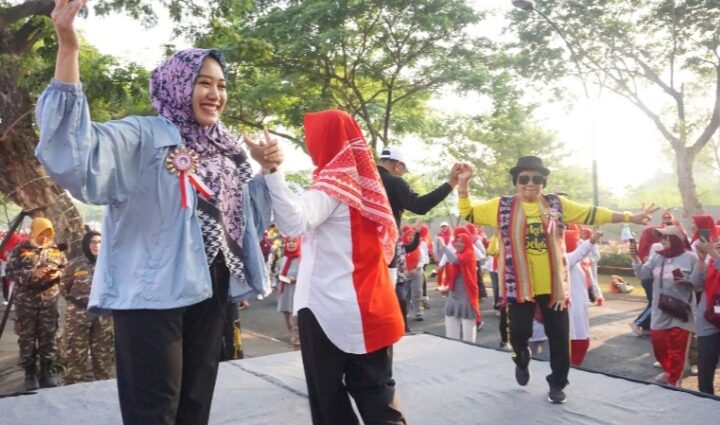 Dihadapan ratusan orang dari MSB, Ning Sasha terlihat ceria dan energik saat berpartisipasi dalam mengikuti senam.