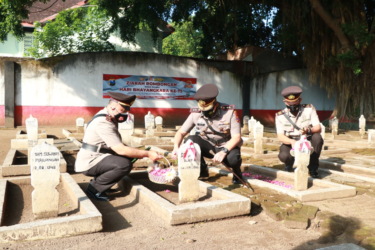 Polres Ponorogo Gelar Upacara Dan Ziarah Makam Dalam Rangka Peringatan Hari Bhayangkara Ke 75 Tahun 2021