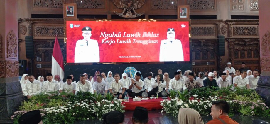 Ponorogo rednews.co.id – Seusai meraih kemenangan dalam kontestan Pilkada Ponorogo dan dilantiknya Bupati dan wakil Bupati pasangan Sugiri Sancoko- Lisdyarita (Rilis) gelar tasyakuran yang bertempat di Pendopo Kabupaten Ponorogo dan dihadiri Forkopimda, Timses, segenap Camat serta Kades Se Ponorogo dan segenap masyarakat yang hadir,Jumat (28/1/2025).