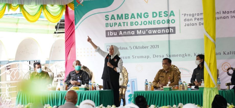 BOJONEGORO rednews.co.id  – Kegiatan sambang Desa terus dilakukan Bupati Bojonegoro Anna Mu’awanah untuk menyerap aspirasi masyarakat. Kali ini sambang Desa digelar di Dusun Srumap Desa Sumengko Kecamatan Kalitidu, Selasa (5/10/2021)