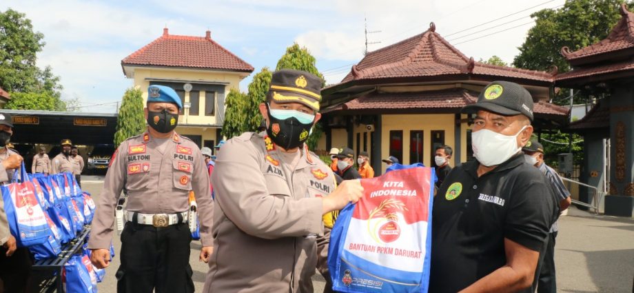 Polres Ponorogo Bagikan Paket Sembako Kepada Jukir Dan Pedagang Kaki Lima