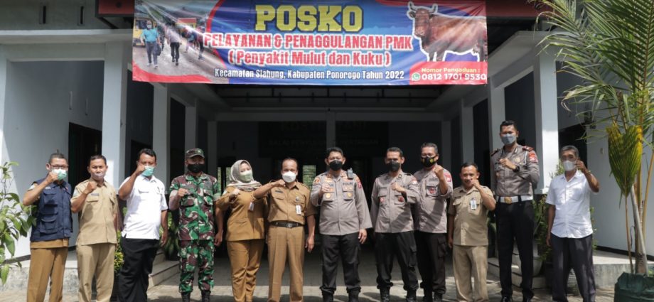 Ponorogo, rednews.co.id – Antisipasi dan pencegahan penyebaran penyakit mulut dan kaki (PMK), Kapolres Ponorogo AKBP Catur.C.Wibowo S.I.K.,M.H laksanakan pengecekan lokasi penyekatan jalur transportasi jual beli Hewan ternak, guna menekan mobilitas hewan masuk maupun keluar Kab.Ponorogo serta memeriksa kesehatan hewan tidak terjangkit virus PMK pasar Hewan serta Posko Penanggulangan PMK di wilayah Kec.Slahung (07/06) siang.