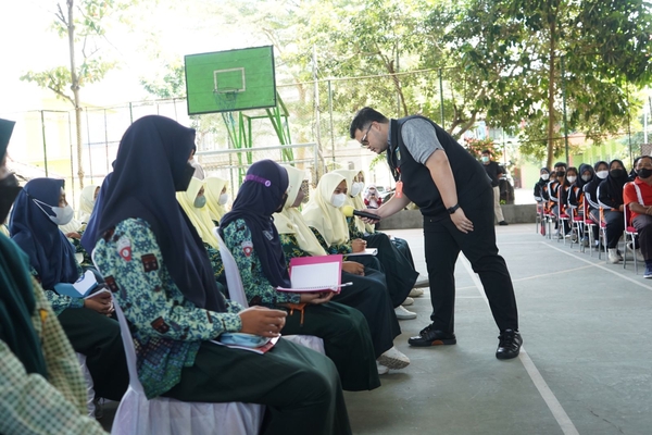 Usai memberikan motivasi, orang nomor satu di Kabupaten Kediri ini dicegat salah satu siswa kelas 11 IPS 1, Cindy Aulia Ramadhani. Ia bertanya mengenai cara Mas Dhito dalam menanggapi haters.