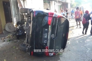 Tidak sampai disitu, mobil selanjutnya menabrak pohon nangka yang berada dipinggir jalan terus terbalik dan berhenti di depan rumah tempat pengerjaan gypsum. “Alhamdulillah pengemudi mobil tidak apa-apa, cuma kondisi kendaraan rusak parah. Untuk penyebab kecelakaan, diduga sopir mengantuk saat berkendara,” pungkas Edi Mulyono.