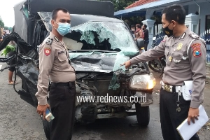 Naas, dari arah berlawanan datang kendaraan truk Mitsubishi nopol S-8938-UN, yang dikemudikan Sahidin (48) warga Desa Betek, Kecamatan Mojoagung, Jombang. Akibatnya, mobil pikap menabrak bagian samping kanan truk hingga ringsek dan pengemudi mobil pikap terjepit bodi depan kendaraannya.