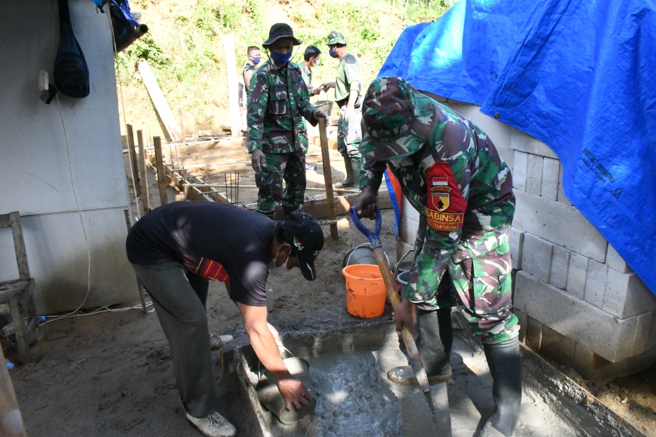 Karya bakti pembangunan rumah milik Bapak Slamet hari ini melibatkan personel dari beberapa instansi antara lain : Anggota Kodim 0802/Ponorogo, anggota BPBD Kab.Ponorogo, Komunitas Trail Ponorogo, Aparat Desa serta masyarakat sekitar.( Fer/MdC0802)