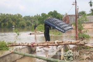 Selanjutnya, warga mulai membuat tanggul darurat untuk menghalangi air meluber dengan sejumlah karung yang diisi tanah. Namun meski sudah berupaya, tanggul sisi barat sebelah utara justru jebol dan air langsung meluber ke pemukiman.
