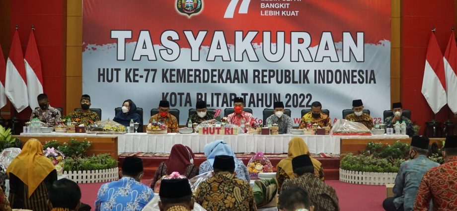Kota Blitar, rednews.co.id -Dalam rangka memperingati HUT ke-77 Republik Indonesia, Pemerintah Kota Blitar menggelar tasyakuran, Malam Tirakatan di Balai Kota Koesoema Wicitra pada Selasa Malam (16/08/2022). Kegiatan tersebut juga diikuti dengan santunan anak yatim piatu sebagai bentuk syukur Pemerintah Kota Blitar dalam memperingati Hari Kemerdekaan Republik Indonesia.