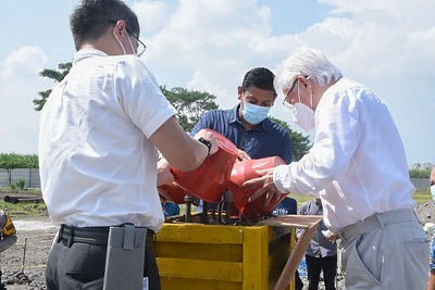 Saat peletakkan batu pertama Wali Kota Kediri didampingi Komisaris PT. HAPETE Woen Oentono, Direktur Utama PT. HAPETE Dikin Oentono, dan Direktur PT. HAPETE Dikim Oentono, Kepala DPM-PTSP Edi Darmasto, Kepala DPUPR Endang Kartika, Kepala Dinas Perhubungan Didik Catur, Kepala DLHKP Anang Kurniawan, Camat Pesantren Widiantoro, perwakilan dari Barenlitbang, dan tamu undangan lainnya (Adv/Kominfo/Myy).