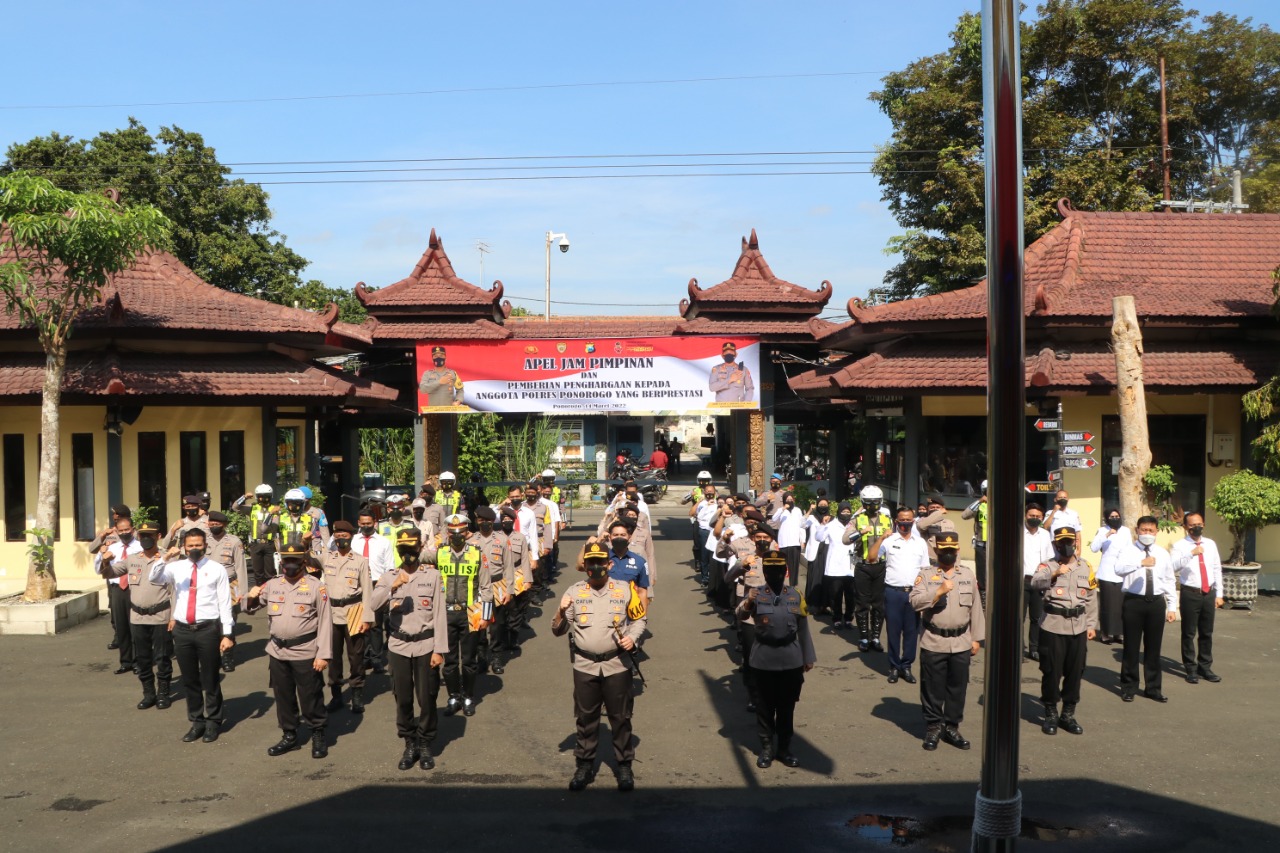 Pemberian penghargaan (reward) berlangsung di halaman apel Polres Ponorogo, Senin (14/03/2022).